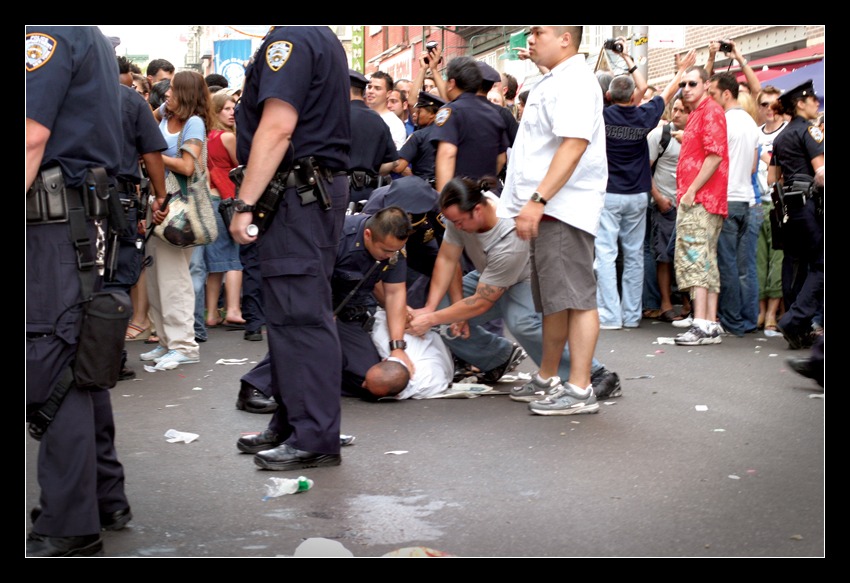 - Again…… Are we American citizens or foreign enemy combatants? When cries and pleas against police brutality are ignored, and we’re only left to protest, we’re treated like foreign enemies. Tax-paying citizens are met with: Tear gas, tanks, assault rifles, grenade launchers, bayonets, and other sophisticated/tactical high-caliber weaponry. Source: http://www.cnn.com/2015/05/18/politics/bayonets-police-white-house/